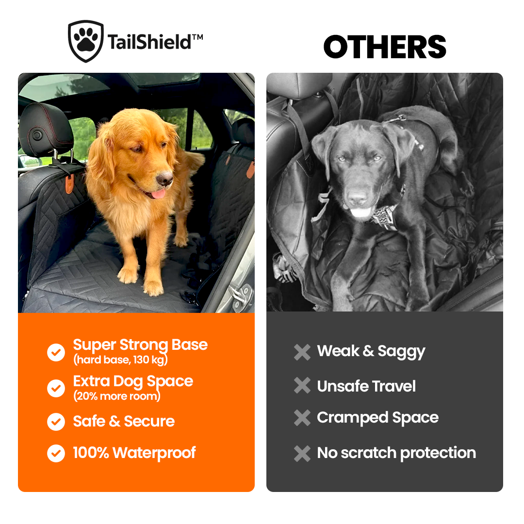 Meet the future of car protection. TailShield™ redefines what a dog car seat cover can do. Engineered with heavy-duty, scratch-resistant, and waterproof materials that shield your interior from dirt, fur, spills, and daily wear. Its advanced multi-layer design delivers superior durability and comfort, giving you total protection for every ride, no matter the adventure.